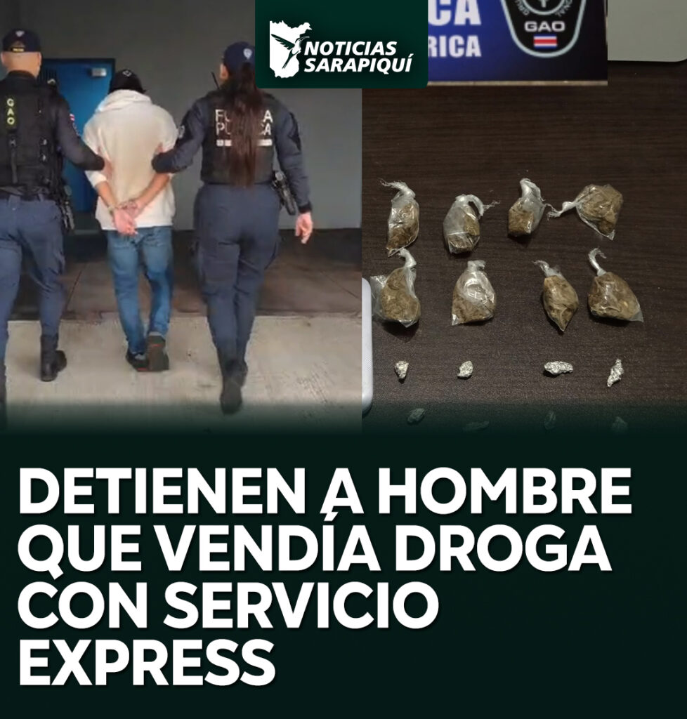 La Fuerza Pública de Sarapiquí detuvo a un hombre sospechoso de dedicarse a la venta de drogas bajo la modalidad “express”, durante un operativo desarrollado en el distrito de La Virgen. La acción policial se dio luego de que se recibieran múltiples reportes ciudadanos que advertían sobre el presunto expendio de estupefacientes en la zona.